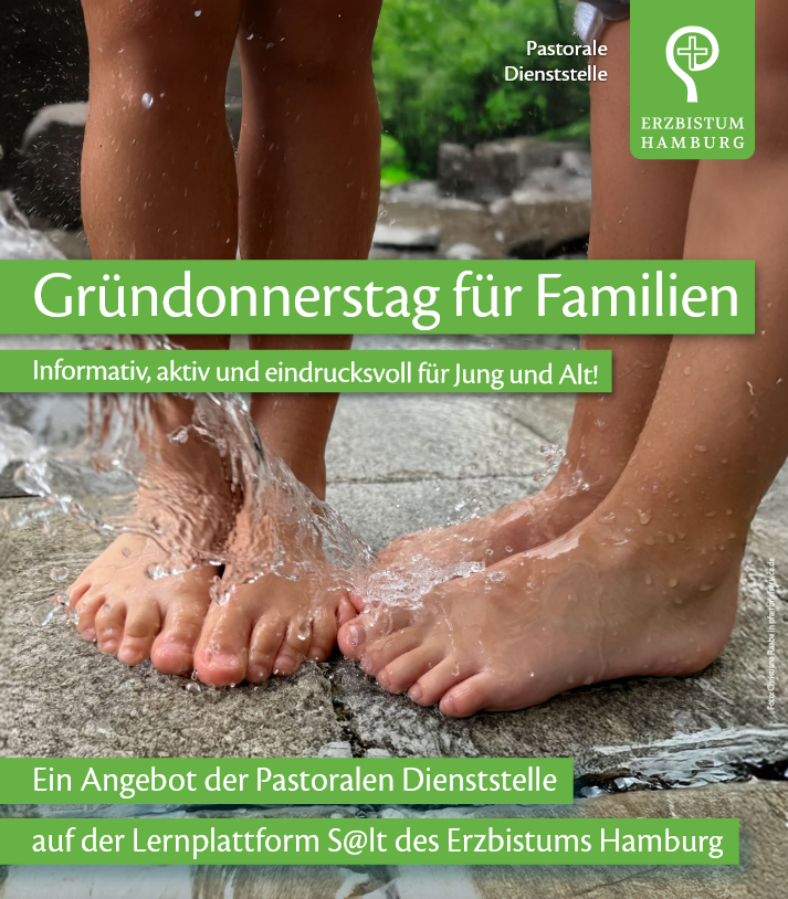 Dieses kleine, abwechslungsreiche online- Format der Pastoralen Dienststelle des Erzbistums Hamburg ist für Familien gedacht, die den Gründonnerstag zuhause gestalten möchten – ob mit Kindern oder als Paar. Die angebotenen Inhalte können für die Gestaltung eines kleinen Gottesdienstes zuhause genutzt werden (vielleicht auch mit älteren oder kranken Angehörigen, die nicht mehr zur Kirche kommen können) oder für eine Familienzeit mit besonderer Qualität und zur Stärkung des Gemeinschaftsgefühls.