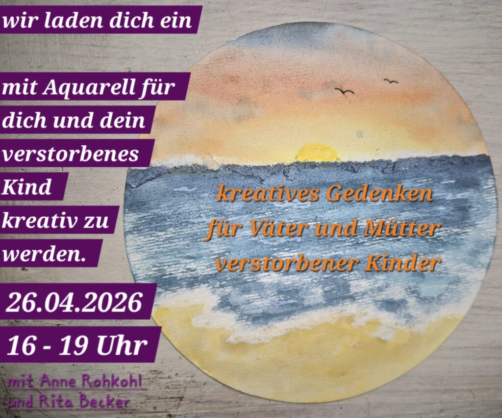 Kreatives Gedenken Veröffentlicht am 8. April 2026 von oeffentlichkeitsarbeit für verwaiste Eltern am 26. April, 16:00 bis 19:00 Uhr im Begegnungszentrum St. Joseph mit Anne Rokohl und Rita Becker